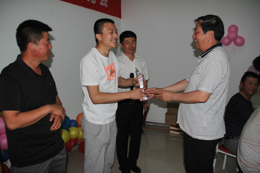 生产事业部总经理唐满厚为男篮、拔河、绑腿接力赛等获奖代表队颁奖,获奖代表队神采飞扬,为胜利的荣耀高兴和自豪。